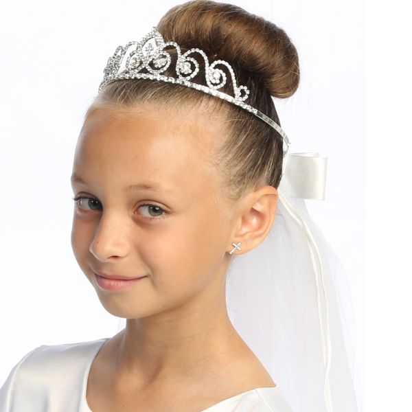 Communion 24" Veil + Rhinestone Tiara A beautiful 24" veil with a rhinestone tiara with satin bows in the back $60.00